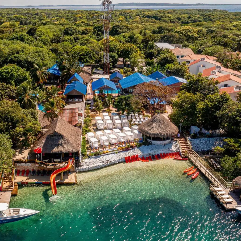 Isla Lizamar es posible alojarse o ir de pasadía, para comer un rico almuerzo típico de la Costa Caribe de Colombia, nadar en las cristalinas aguas, hacer kayak, snorkeling y conocer además el Oceanario.