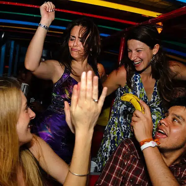 Recorrido por la ciudad en chiva rumbera moderna con música, animador y pista de baile (chiva moderna)